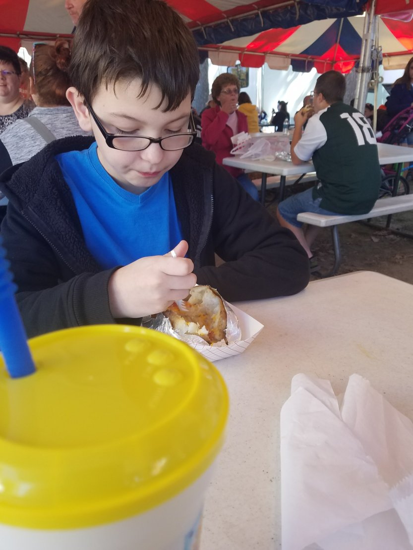 We did some more exploring, and Chase begged me for a donut. The place also sold cider from a local orchard, and I ordered two hot and one cold. I explained to Chase that this is the best cider he would ever taste, and he seemed to agree, drinking his cold one in two minutes flat and giving himself a belly ache. What’s a county fair without a belly ache?