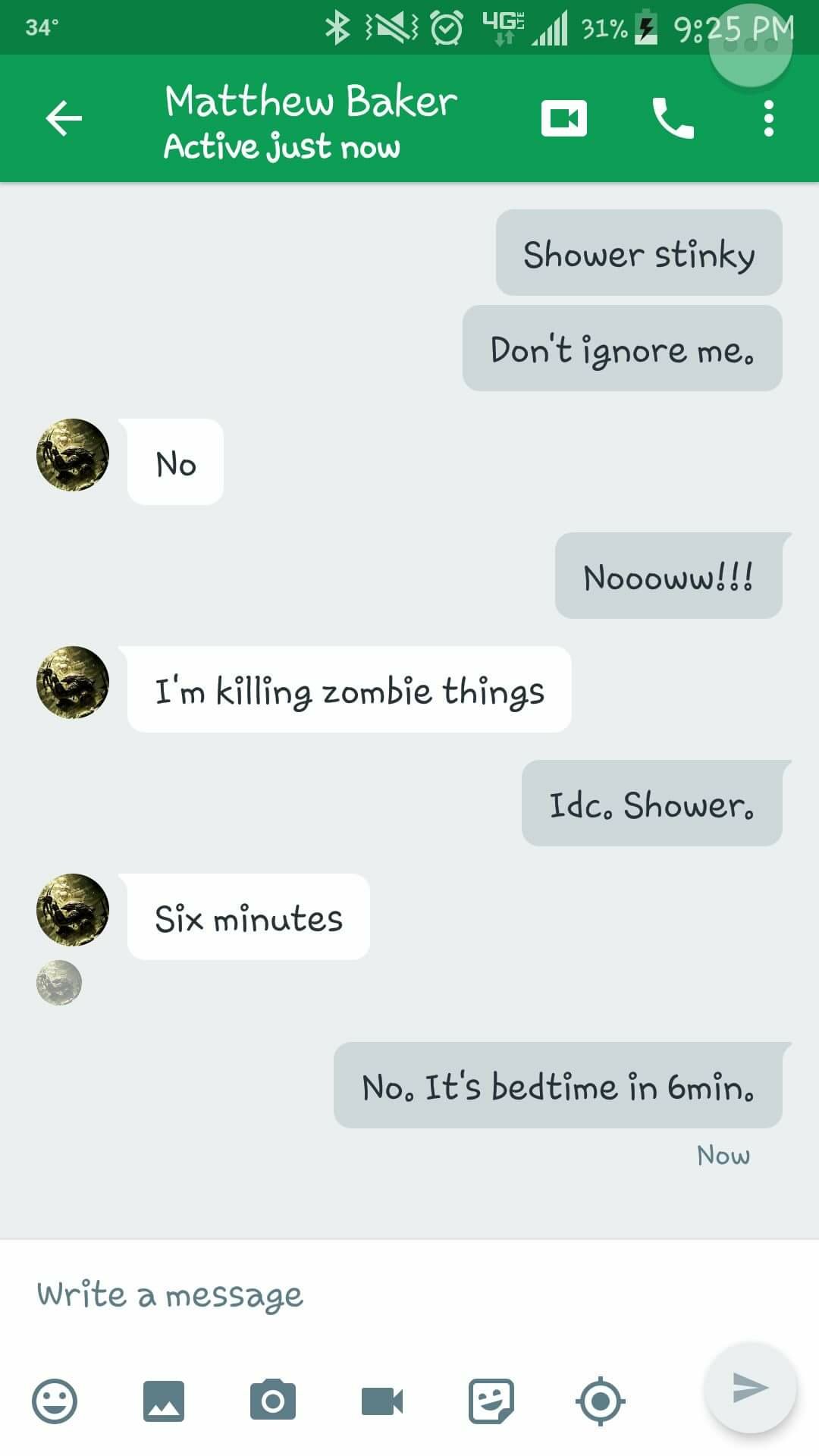 “Matt. Pick up your socks and go get in the shower. “