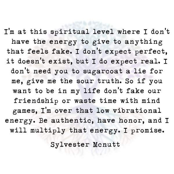 There are no facades anymore in my life, zero fake personalities. I don’t have the energy or the desire or time to deal with any of this type of bullshit.