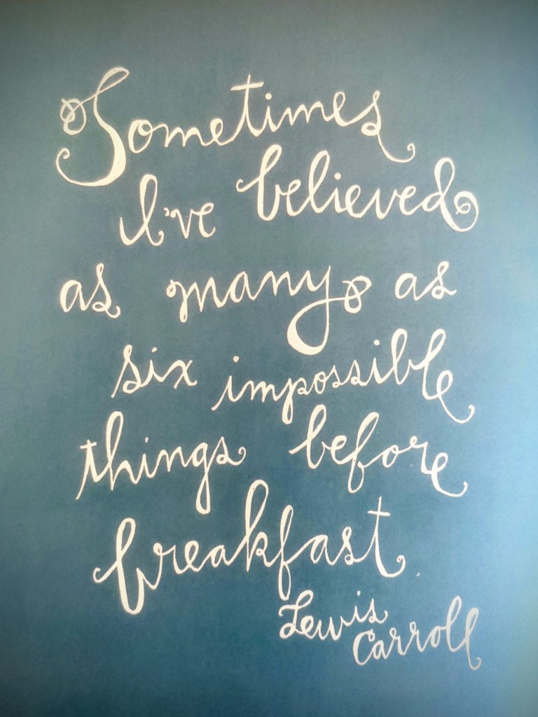 “Sometimes I’ve believed as many as six impossible things before breakfast.” – Lewis Carroll