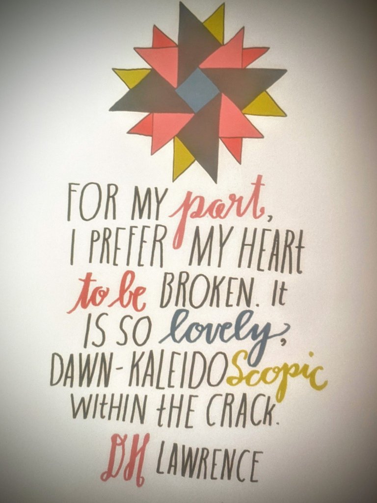 “For my part, I prefer my heart to be broken. It is so lovely, dawn-kaleidoscopic within the crack.” – DH Lawrence