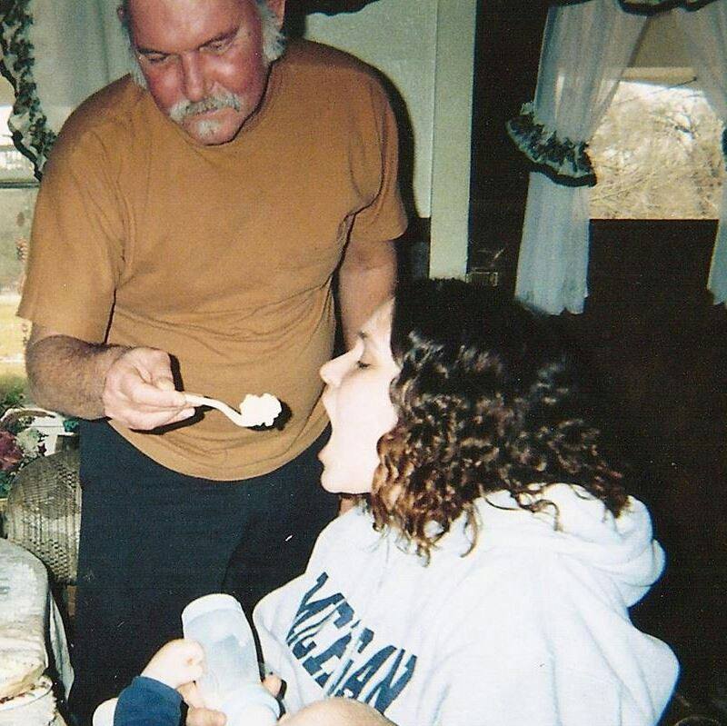 I’m so glad someone got a photo of the moment; it’s one of my favorites, and speaks volumes about who my father was, and who he raised me to be. I knew my child eating needed to come first, and dad knew his child eating needed to come first.