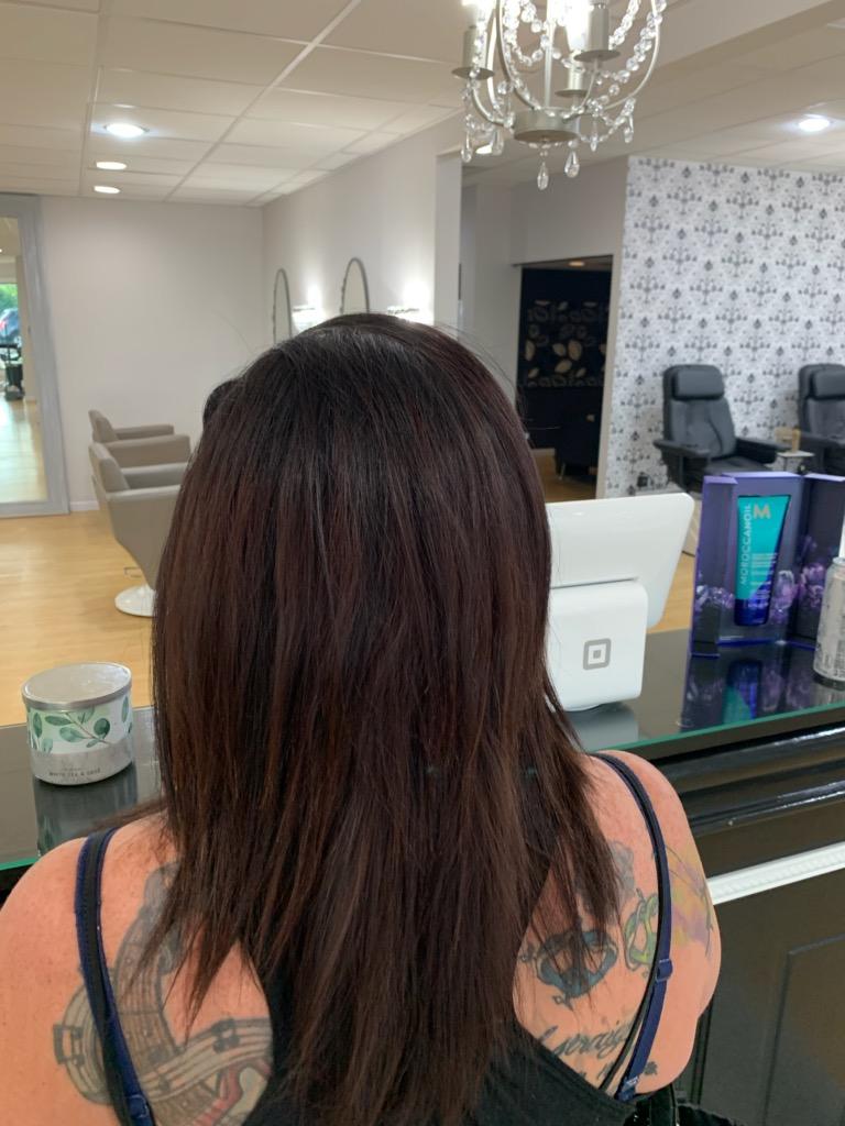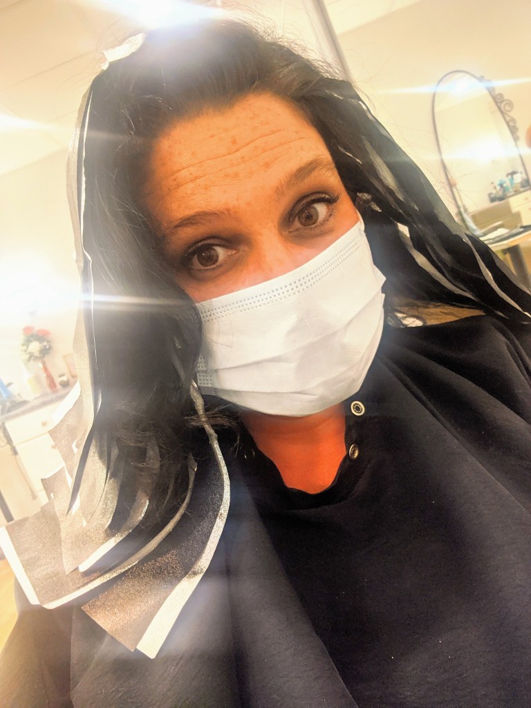 But last week I looked in the mirror and noticed that the dye I had recently put in was already washing out, my ends were shot because I hadn’t even been to get it trimmed since before the shut down in March, and I was overall displeased with my hair’s appearance. I got this idea in the middle of the day at work, and as I was already in the midst of a text conversation with Emma, asked her to recommend someone to me.