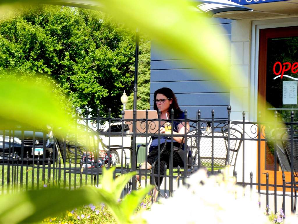 We went several places around town – the arboretum, the location of a couple murals in town that I hadn’t had a chance to see in person. He also happened across this little gem of a coffee shop called – get this – Rough Draft and had me set up there like I was working so he could get some ‘working’ photos of me. People stared as they walked by, at the guy hiding in the bushes taking pictures of the lady on her laptop, and I tried to hold my serious working face with this knowledge in my head.