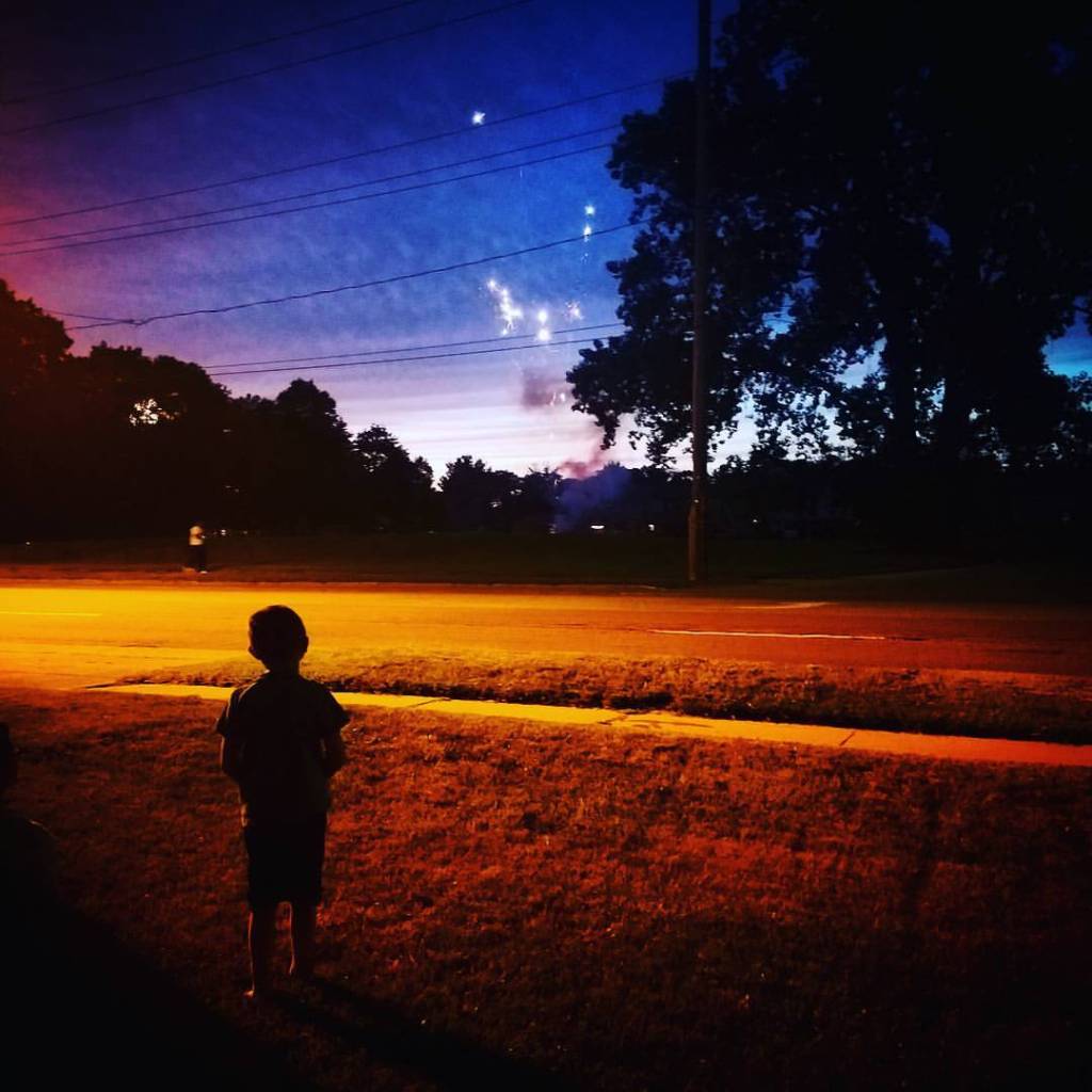 Watching fireworks from our yard